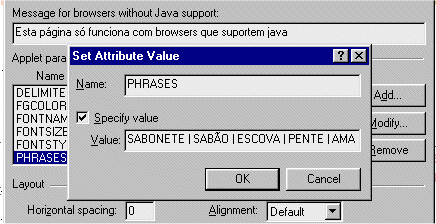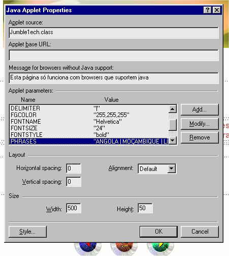 opção «Java Applet Properties...