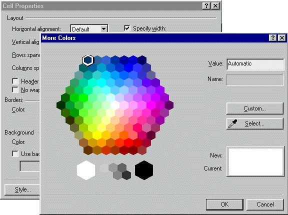 abrirmos a janela respeitante às propriedades (Cell properties), uma mudança da cor do fundo apenas alterará