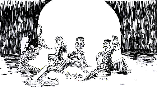 comer e a beber, à volta das fogueiras.