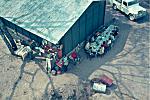 Refeição durante o período em que a messe de oficiais e sargentos foi ao ar livre, por o quartel estar em reconstrução. Foto tirada do cimo do depósito de água. (slide refª 69)