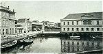 Aspecto do centro da cidade de Aveiro por volta de 1910, vendo-se barcaças na doca do Côjo.