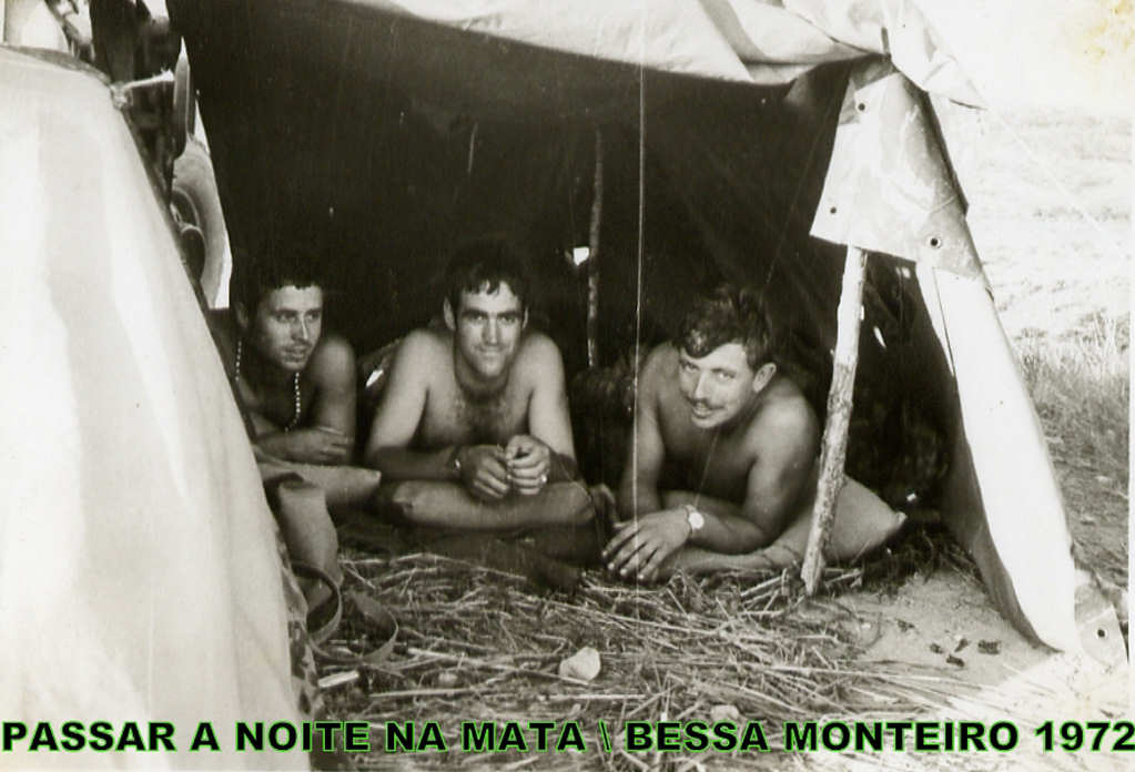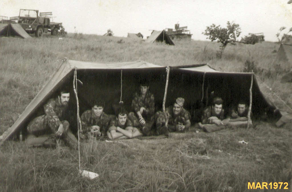 acampamento para comer a ração de combate. Da esq.ª para a dtª: ???, ???, ??? e ???.