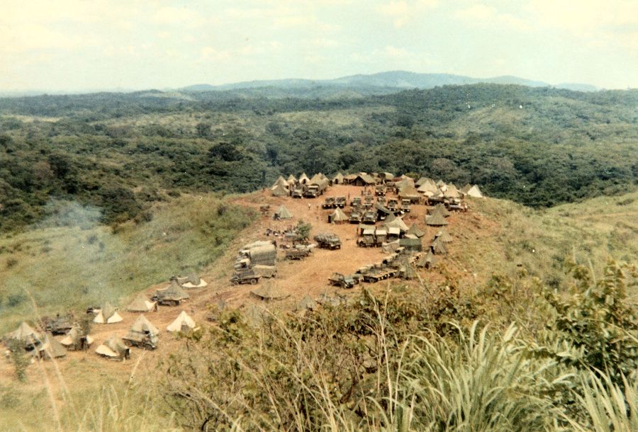 Base para uma operação situada na região de Canacassala, a cerca de 80 a 90 quilómetros a nordeste de Luanda, mais ou menos no centro do triângulo formado pelas localidades de Quicabo, Nambuangongo e Cage. Mário Ferreira Silva - Janeiro de 1973. Ver o mapa.