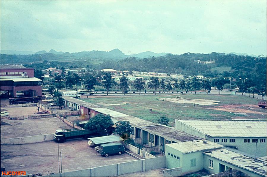 Aspecto de Carmona. Fotografia obtida a partir das traseiras da messe de oficiais. Ao fundo, o campo de futebol. Sector de Uíje - Angola. Henrique J. C. de Oliveira - 11 de Junho de 1973. Ficheiro: Carmon05.jpg - 119 KB