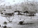 Pilão e outros objectos em frente da cubata.