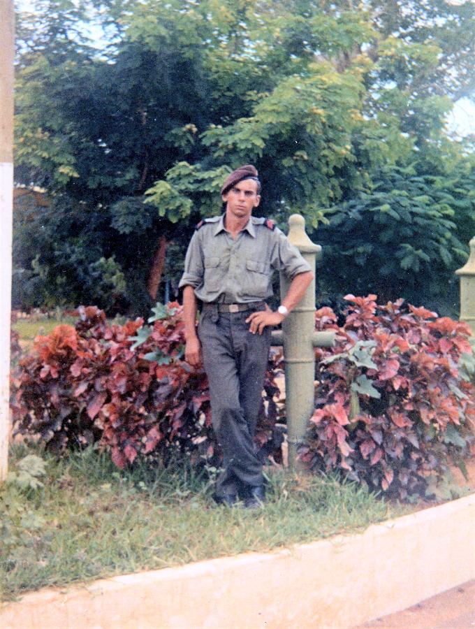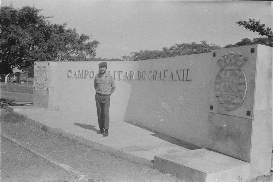 O cabo padeiro Mário Silva no jardim junto à capela de Nossa Senhora de Fátima, no Grafanil.