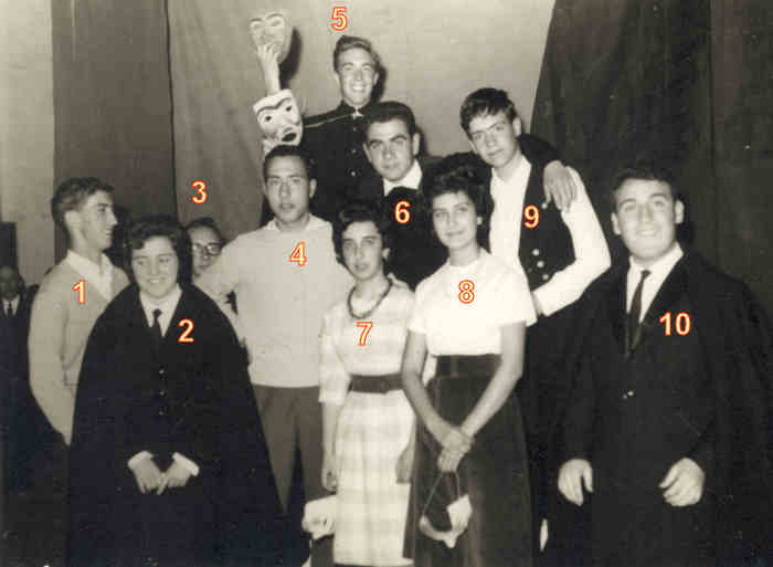 Nomes: 1.Teresa Sá; 2.Eneida Alves; 3.Isolina Neto; 4.Maria do Carmo Oliveira; 5.Maria Manuel Candal (Chincha); 6.António Teixeira; 7.Mário Pires; 8.Camané Soares; 9.Luís Dias da Silva.