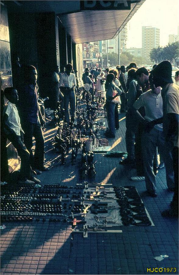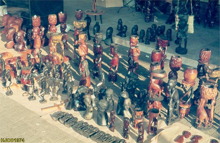 Venda de estatuetas de madeira no centro de Luanda, em 1974. |