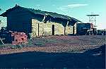 Aspecto do destacamento de Marimbanguengo, visto do refeitório. À direita, o posto de enfermaria, ao lado do depósito de materiais de construção. No cando esquerdo, o depósito de água montado pelo grupo que estava com o alferes Oliveira. (Slide refª 1140).