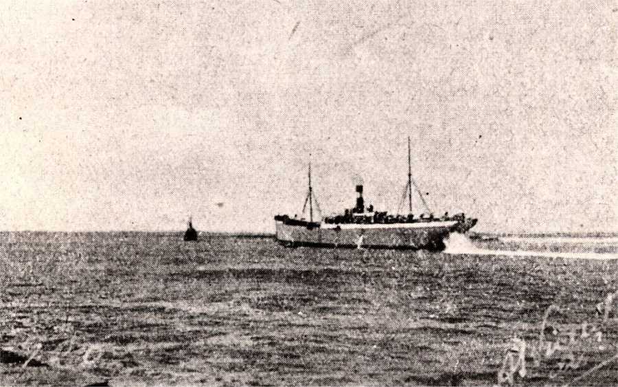 Navio Desertas já a sair a barra de Aveiro, em 20/3/1920, após um longo período de trabalhos para o salvar - Foto Henrique Ramos.