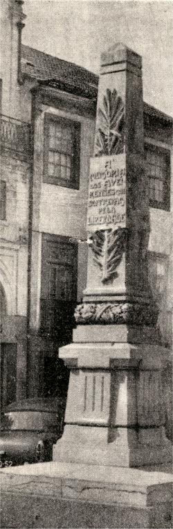 «Entre os festejos do dia, este obelisco, devido ao lápis e ao cinzel de Ernesto Korrodi, avulta, já pelo seu pensamento generoso, já porque se ergue neste local, onde a 16 de Maio de 1828, um núcleo de cidadãos, unindo-se às forças de Caçadores 10, de guarnição nesta cidade, soltaram o grito de revolta e iniciaram esse grande movimento, que dotou o País com as instituições constitucionais!
