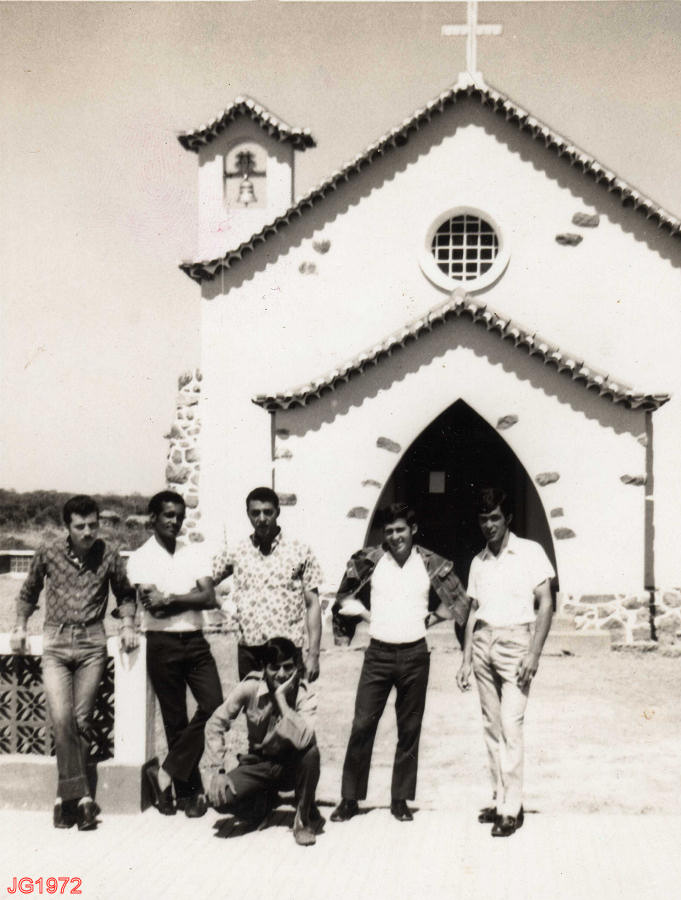 Capela de Nharêa. Na frente, militares da Companhia de Cavalaria 1407. Identificação: Em cima: ???; ???; ???; ???. Em baixo: ???.