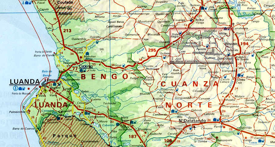 Localização no mapa de Angola da localidade de Terreiro.