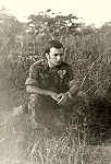 Mário Ferreira da Silva, da Companhia de Caçadores 3387, na sua passagem pelo Terreiro junto de uma bananeira quando regressava ao Grafanil, após intervençao do grupo na zona de Quiquiemba.