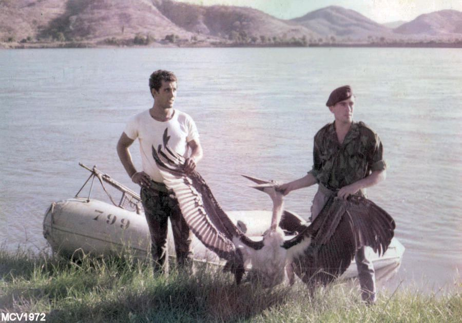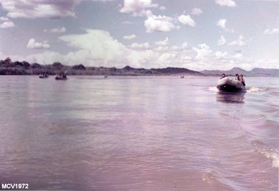 operação no Rio Zambeze. Ao fundo, a ponte sobre o