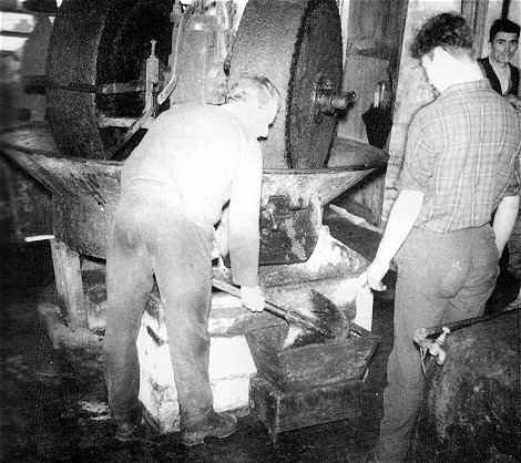 duas mós assimétricas, igualmente de pedra, aqui chamadas galgas.