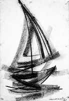 4 - Barcos I, 1965 - grafite - 22x29 cm.   5 - Barcos II, 1965 - grafite - 22x29 cm.   6 - Peixeira, 1972 - nanquim e feltro - 30x42 cm.