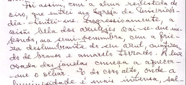 Contemplação sonora O Outono entrara já por Novembro adentro e as suas cores mais características coalhavam-se, agora, nos tons de castanho, vermelho-ferrugem e amarelo. Uma suavidade dolente, uma paz dulcificadora inundava-me os olhos e poisava no meu interior, em fímbrias de felicidade. Foi assim, com a alma revestida de oiro, que entrei na Igreja da Misericórdia. Sentei-me. Progressivamente, a visão bela dos azulejos vai-se-me impondo, na semi-penumbra, com a frieza deslumbrante do seu azul, matizado de branco e amarelo-torrado. A luz coada das janelas começa a aquecer-me o olhar. E do coro alto, onde a luminosidade é mais intensa, saltam, abruptamente, e a galope, ondas sonoras que enchem o espaço. É o órgão de tubos restaurado que entra em festa. Surpreendido, concentro-me no seu apelo. Não são melodias comuns, construções harmónicas que todos ouvimos com frequências. São aglomerados sonoros que me entram pelos tímpanos e, arrebatando-me me sugerem manchas coloridas intensas, em tons de castanho doirado, vermelho-ferrugem, amarelo, verde com ouro…, como em quadro polifónico. Oiço e vejo ao mesmo tempo. E contemplo imóvel cerrados os olhos, o interior todo a vibrar… Abril 2008