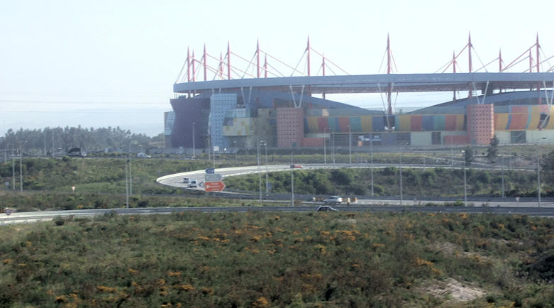 quatro dos cinco dedos de tubo metálico. De ambos os lados do edifício, dentro dos muros, adivinhavam-se grandes
