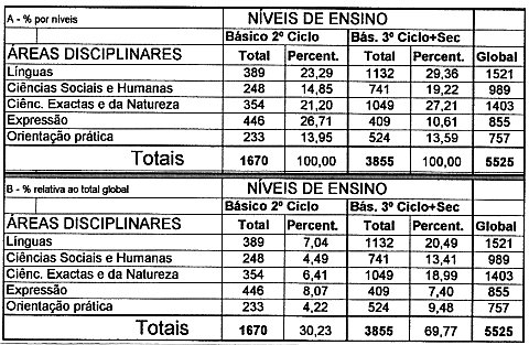 agrupadas por cinco áreas disciplinares, utilizando critérios já adoptados em