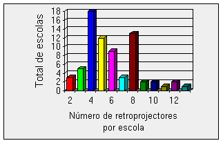 retroprojector para 8 a 10 salas de aula, havendo mesmo uma escola secundária