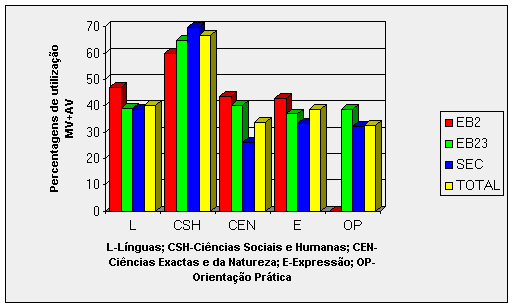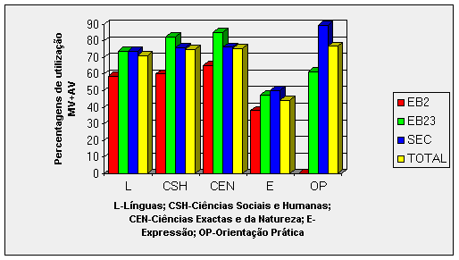 AV, mostra-nos que, em qualquer nível de ensino, a maior frequência de utilização