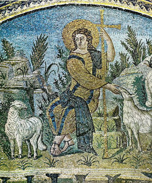 O Mausoléu de Galla Placídia, em Ravena, erguido pelo final do primeiro quartel do séc. V, é um monumento magnífico, revestido no interior com belos painéis de mosaico, de diversa simbologia cristã. No caso, o Bom Pastor.
