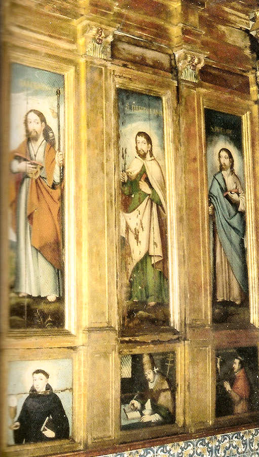 Retábulo de Apóstolos, partindo da esquerda: S. Paulo, Santo André e S. Matias; na predela, Santa Brígida, S. Eufémia e Santo Amaro.