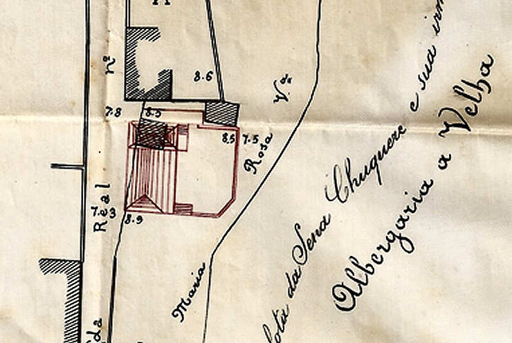 [13] Planta à escala 1/1000, da implantação da escola, área a expropriar e zona envolvente, da autoria de Adães Bermudes, datada de Junho de 1900. ACA, col. do autor.