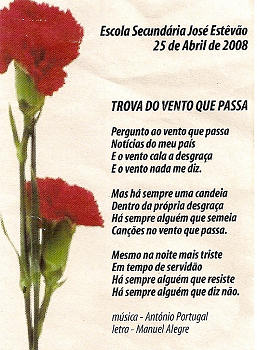 O professor Moreira trouxe o amigo Vítor Lourenço Marques que cantou “Trova do vento que passa” e que nós acompanhámos o melhor que a memória e a voz nos permitiram.