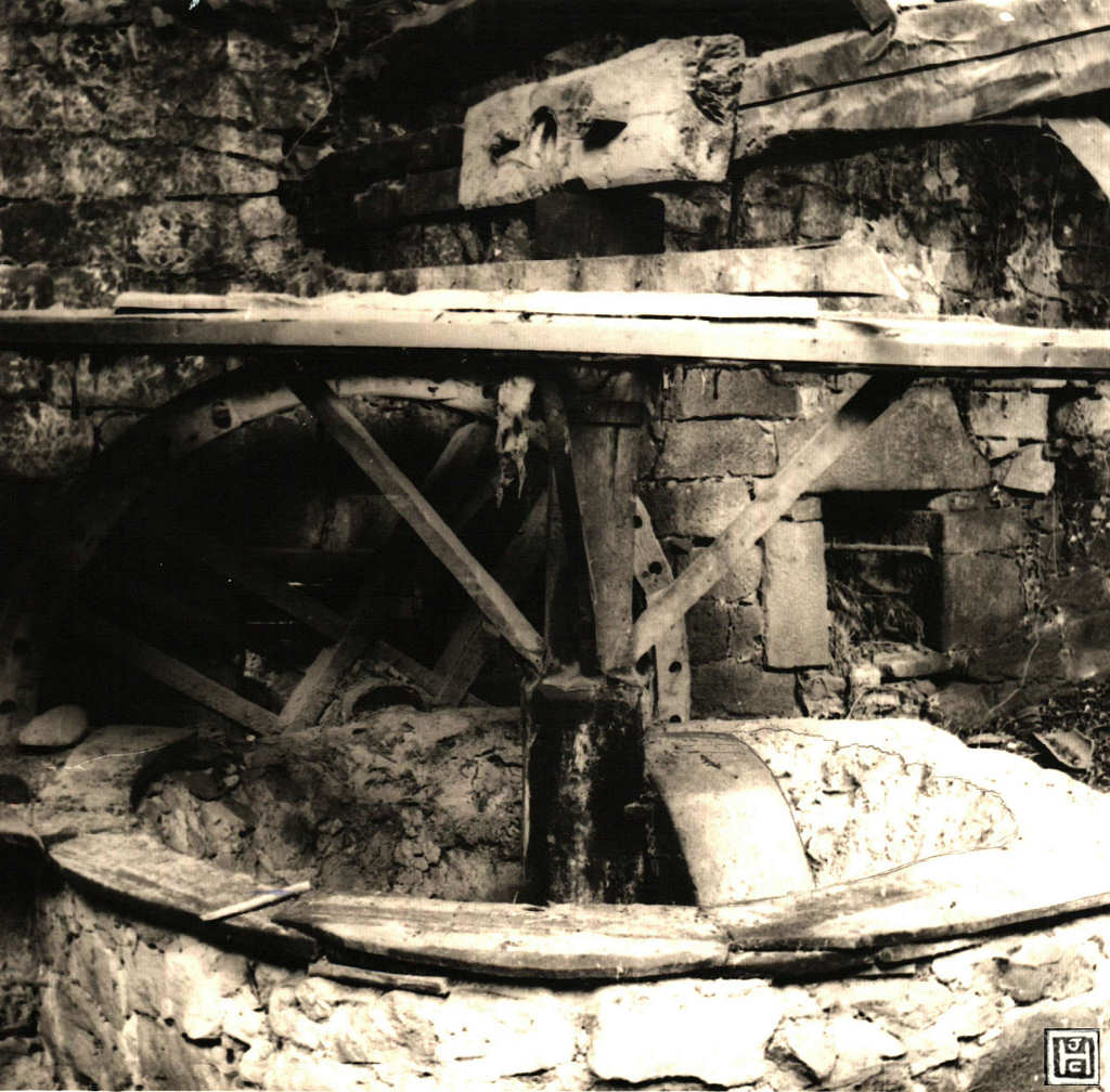 Figura 151: Aspecto da vara e fornalha do lagar das Carvalhosas, P. 286, freg. Torres do Mondego, conc. e dist. Coimbra (negativo cedido por Carlos A. Barbas).