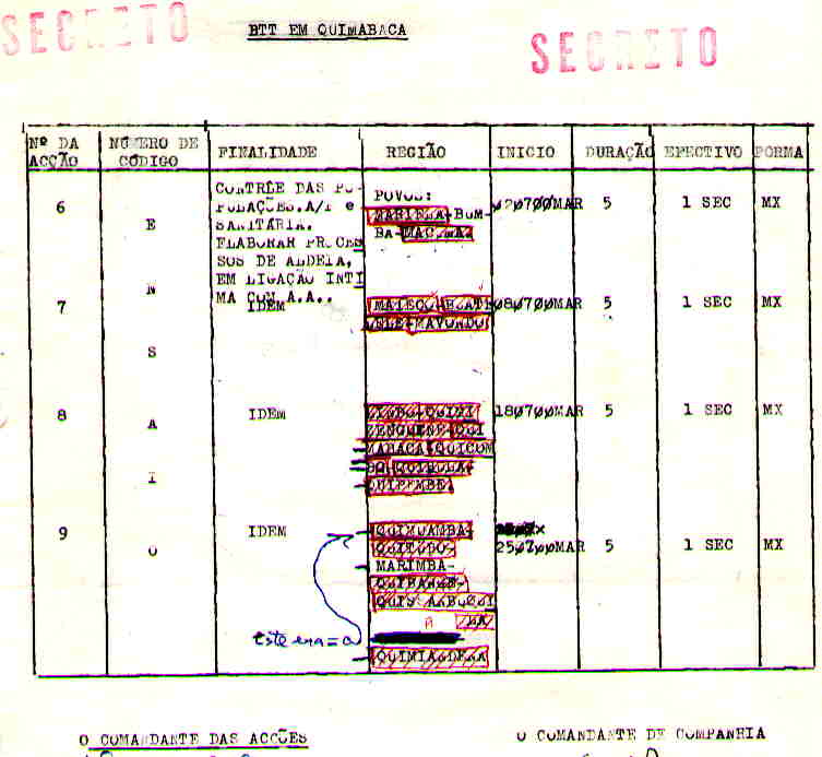 Além da folha assinalada com as palavras «SECRETO», a vermelho e em letras maiúsculas, onde consta a assinatura do comandante da Companhia, tenho comigo um exemplo dactilografado do processo de aldeia. Além dos elementos referentes ao recenseamento das povoações, a parte restante, bastante extensa, faz-me lembrar, em certa medida, o I.L.B., ou seja, os Inquéritos Linguísticos organizados pelo meu antigo professor, o Doutor Paiva Boléo. Dá-me a nítida sensação de ter recuado e voltado ao meu terceiro ano da Universidade.