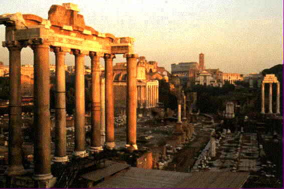 Em Roma e noutras cidades havia sempre um fórum, ampla praça pública, rodeada pelo pórtico. Não havia carros, somente peões.