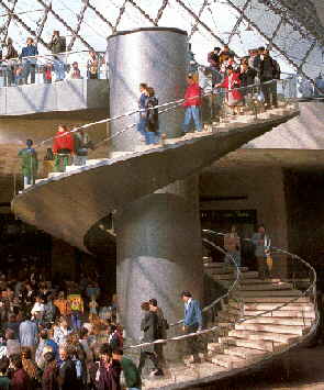 Le Louvre devient un grand forum, “un cadeau à la ville”. Aux 60 000 m2 créés sous la pyramide, s’ajoutent les cafés, les salles de documentation et de repos. On y trouve aussi une galerie commerçante, un centre de la mode et des parkings.