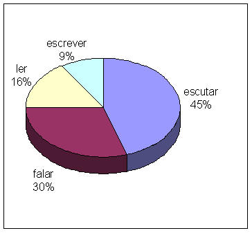 à fala; 16 % são ocupados a ler; para a escrita apenas restam 9 %. |
