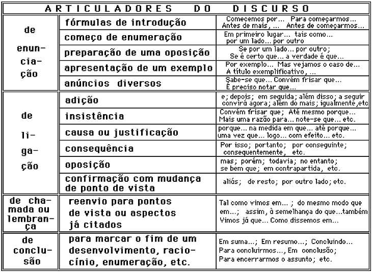 articuladores do discurso, tais como fórmulas de introdução, fórmulas de