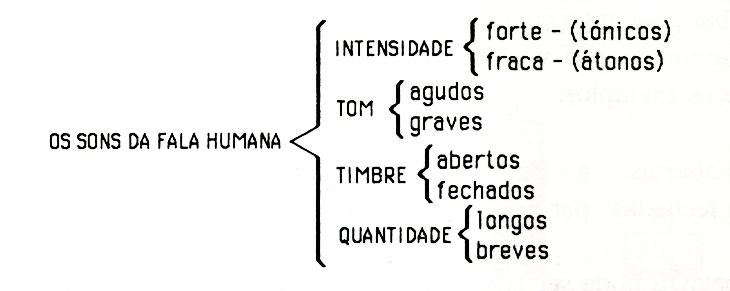 As sílabas na sua pronúncia podem adquirir, acusticamente, diversos aspectos, na medida em que os sons da fala humana podem variar quanto à intensidade, quanto ao tom, ao timbre e à quantidade  (veja-se o esquema da figura 23).