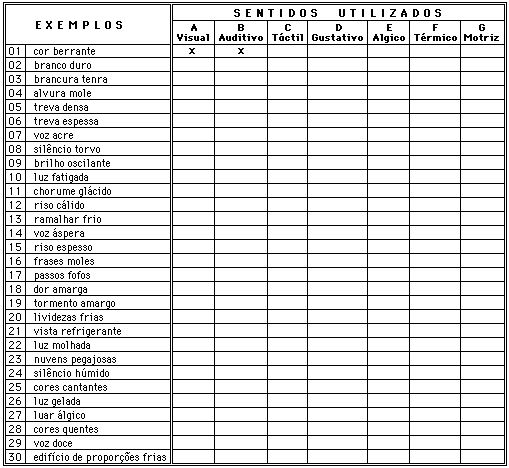 sinestesias apresentados no quadro da figura 58 foram colhidos em diversos