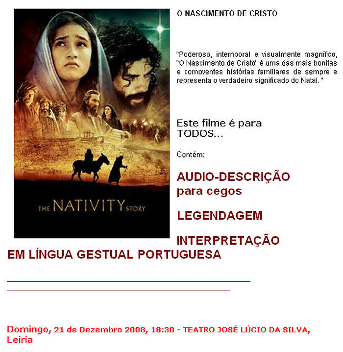 Cinema para cegos e surdos em Leiria - 21 Dezembro 2008 - Entrada Livre