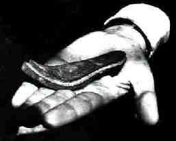 pé. A parte superior do tamanco é em couro e é presa à volta do tamanco com "brochas" (pregos de cabeça larga).
