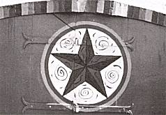 uma pintura na porta do castelo da proa.