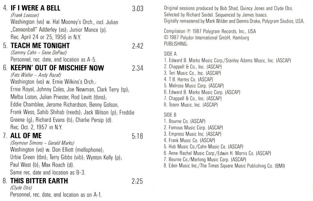 Obs.: Acerca de DINAH WASHINGTON - Ficha Técnica: Lado A - Lado B