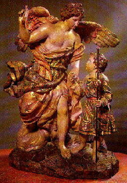 Em cima, S. Rafael e Tobias; em baixo, cálice com cristais de quartzo pendentes.