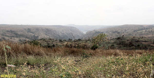Vista do rio Kwanza (ao longe), após a barragem de Cambambe. |