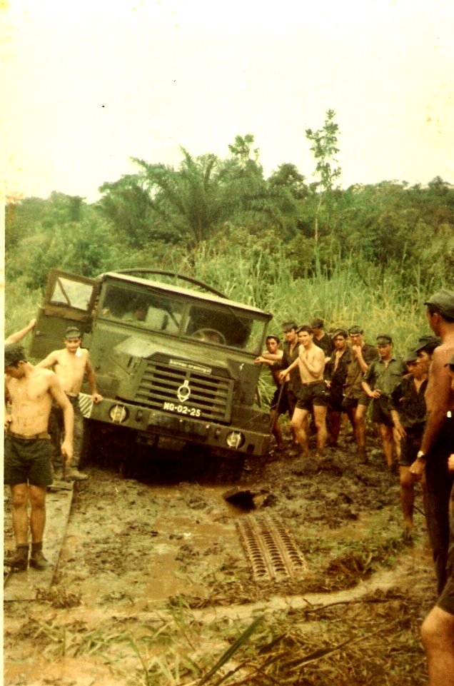 Nesses pântanos era frequente os veículos mais pesados ficarem atascados até aos eixos, o que significava um ou dois dias de atraso, gastos a salvar a viatura do atoleiro. Apenas esses veículos milagrosos chamados “Unimog” conseguiam passar, recorrendo ao guincho montado na frente. O cabo era preso a uma árvore na direcção do nosso destino e o guincho arrastava esses “burros do mato” para terreno seco.