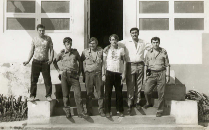 À entrada da pensão em 1972. Da esquerda para a direita: ???, ???, ???, ???, ??? e ???.