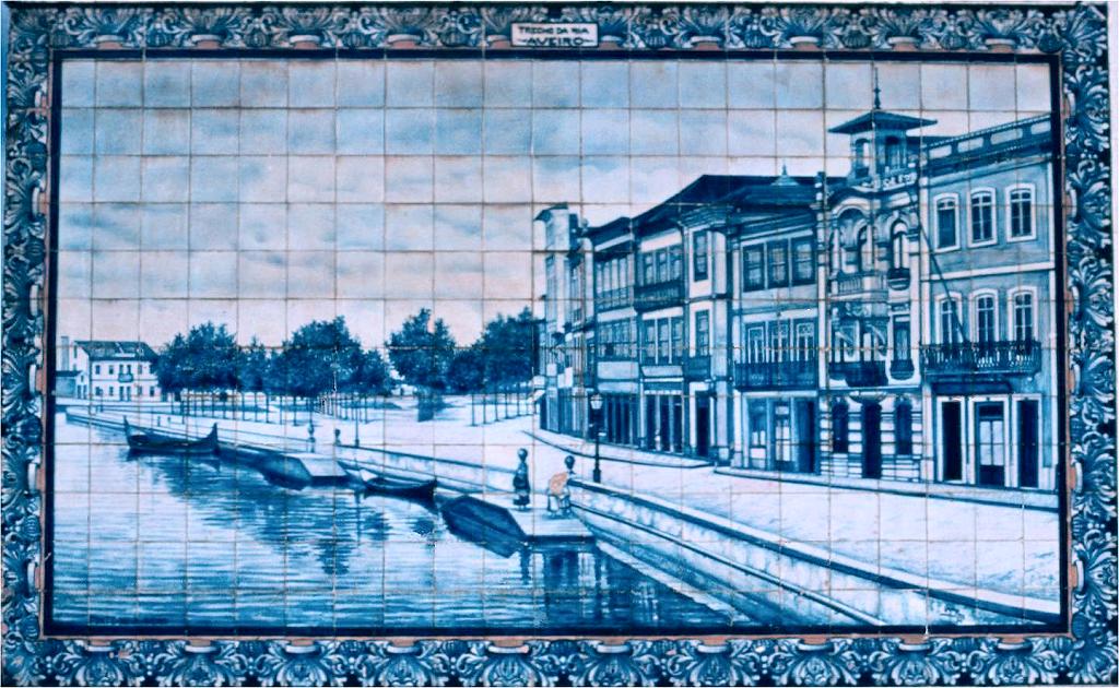 entrada do Canal das Pirâmides, em Aveiro. Painel