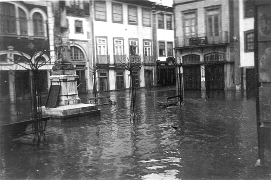 Aspecto das cheias em Aveiro, no ano de 1938, vendo-se na imagem a Praça do Comércio.