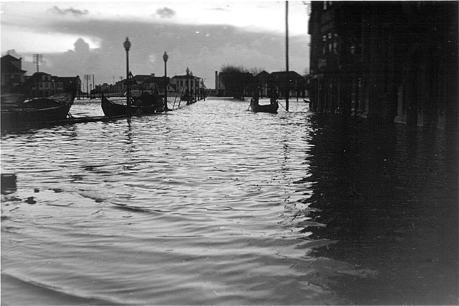 Aspecto das cheias em Aveiro, no ano de 1938, vendo-se na imagem parte do Canal Central.
