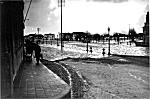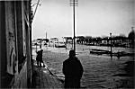 Aspecto das cheias em Aveiro, no ano de 1938, vendo-se nesta primeira imagem da colecção a silhueta do fotógrafo que fez a reportagem, Raul Marques de Almeida. Fotografia no formato 6x9 cm.